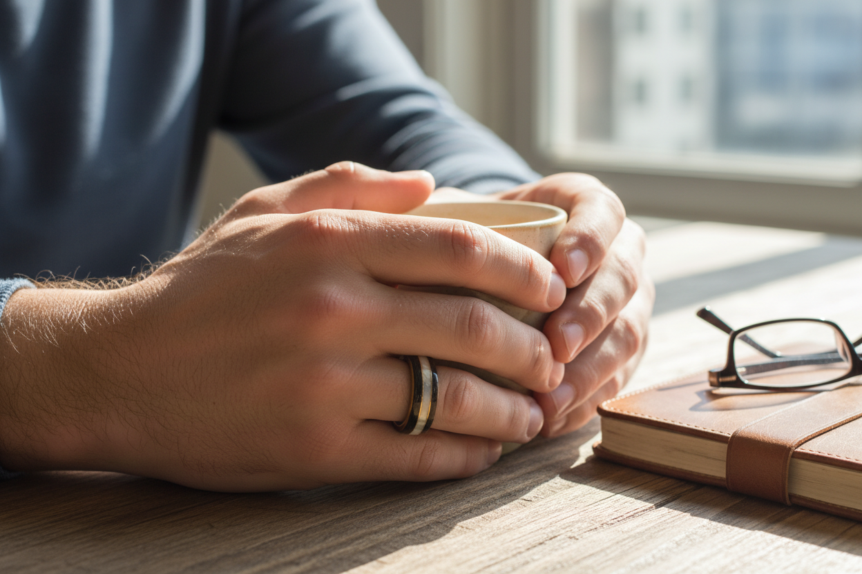 Jeśli szukasz pierścionka, który łączy drewno, nowoczesne materiały i elegancki akcent – ten model spełni te oczekiwania.