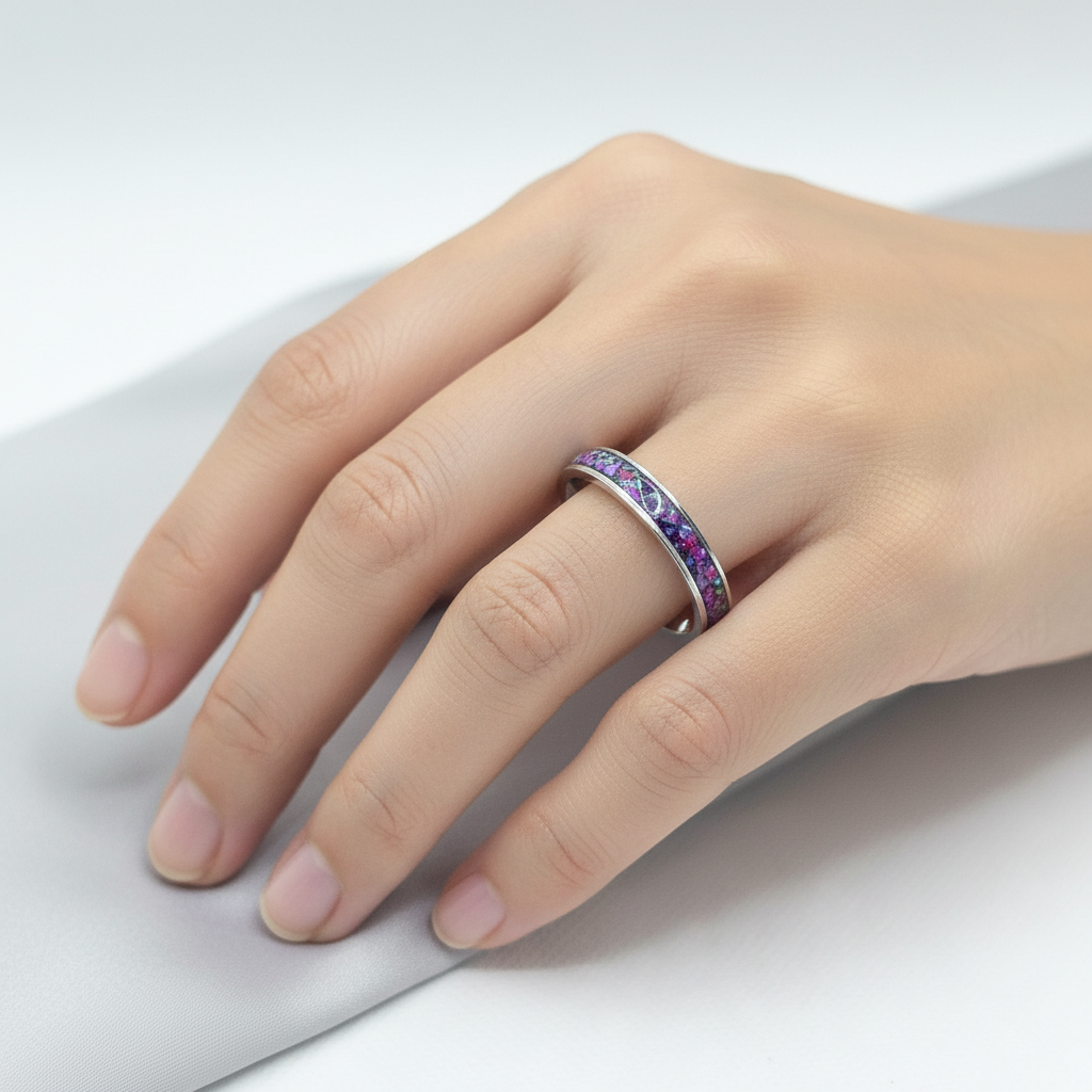 Poszukujesz biżuterii, która łączy subtelność z wyrazistym akcentem? Ten pierścionek właśnie taki jest. Został stworzony z myślą o kobietach, które kochają minimalizm, ale nie boją się koloru. Wkładka z neonowego różowego opalu przyciąga wzrok, a obrączka ze stali nierdzewnej świadczy o trwałości i elegancji. Ręczne wykonanie gwarantuje, że każdy egzemplarz ma swój niepowtarzalny charakter – i że nosisz coś wyjątkowego, a nie masowo produkowaną biżuterię.