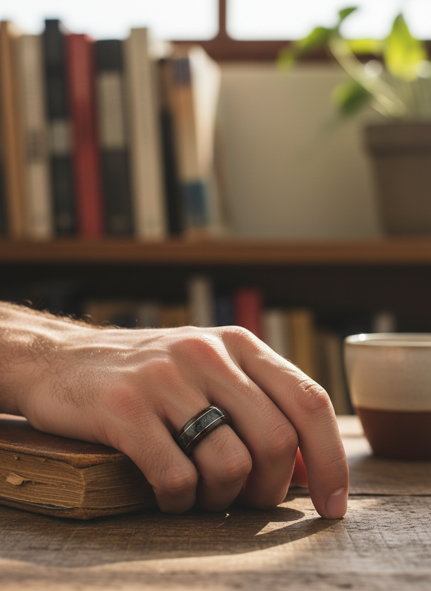 Ciemny odcień drewna kojarzy się z elegancją, ale w naturalnym, nieprzekombinowanym wydaniu. Z jednej strony jest minimalistyczny, a z drugiej — ma w sobie głębię, która sprawia, że nie da się przejść obok niego obojętnie. To idealny wybór zarówno do codziennego noszenia, jak i na bardziej formalne okazje. Co więcej, drewno nie wychładza skóry jak metal, dzięki czemu pierścionek jest bardzo przyjemny w użytkowaniu.