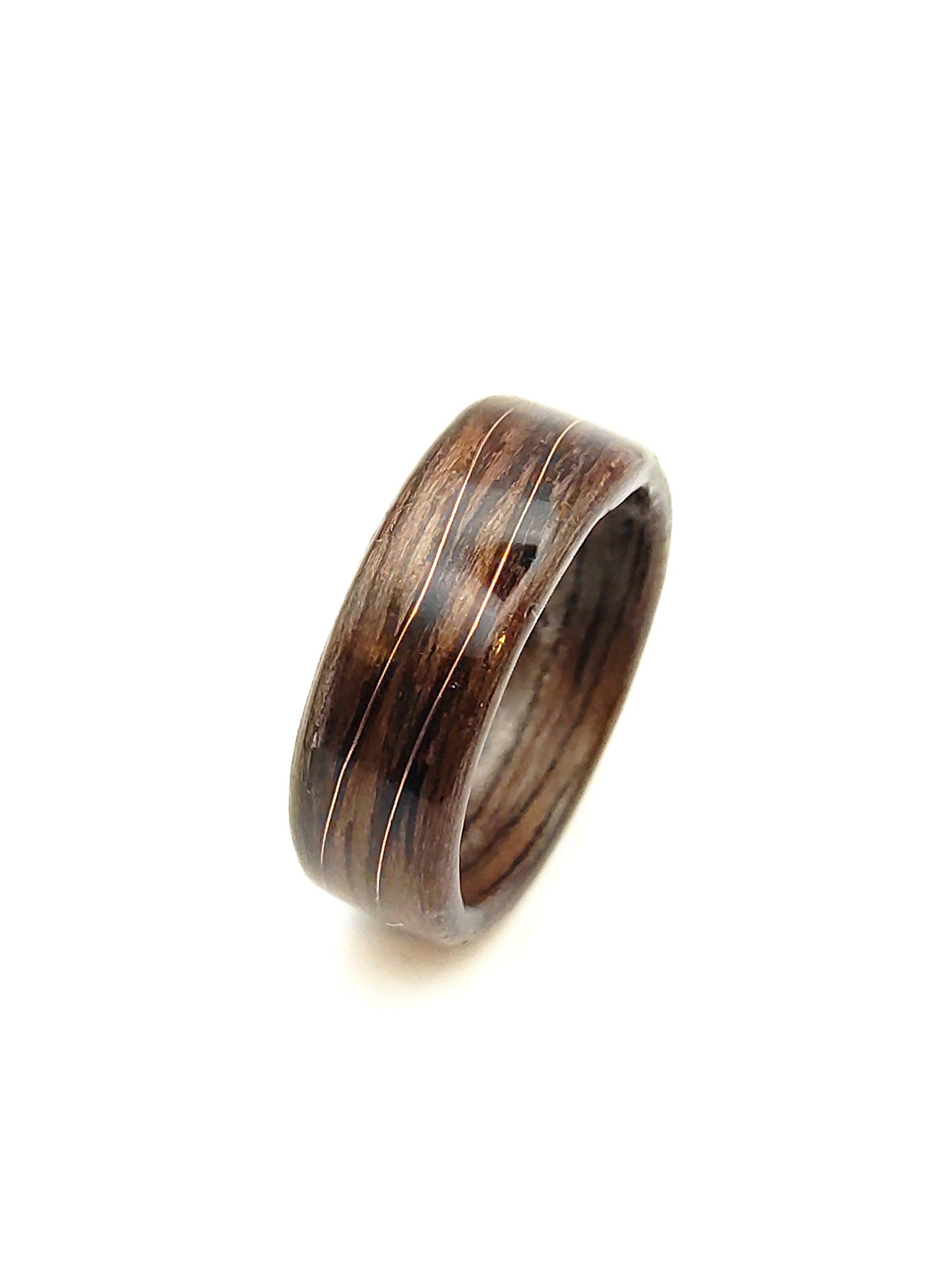 Drewniany pierścionek z orzecha z miedzianą falą