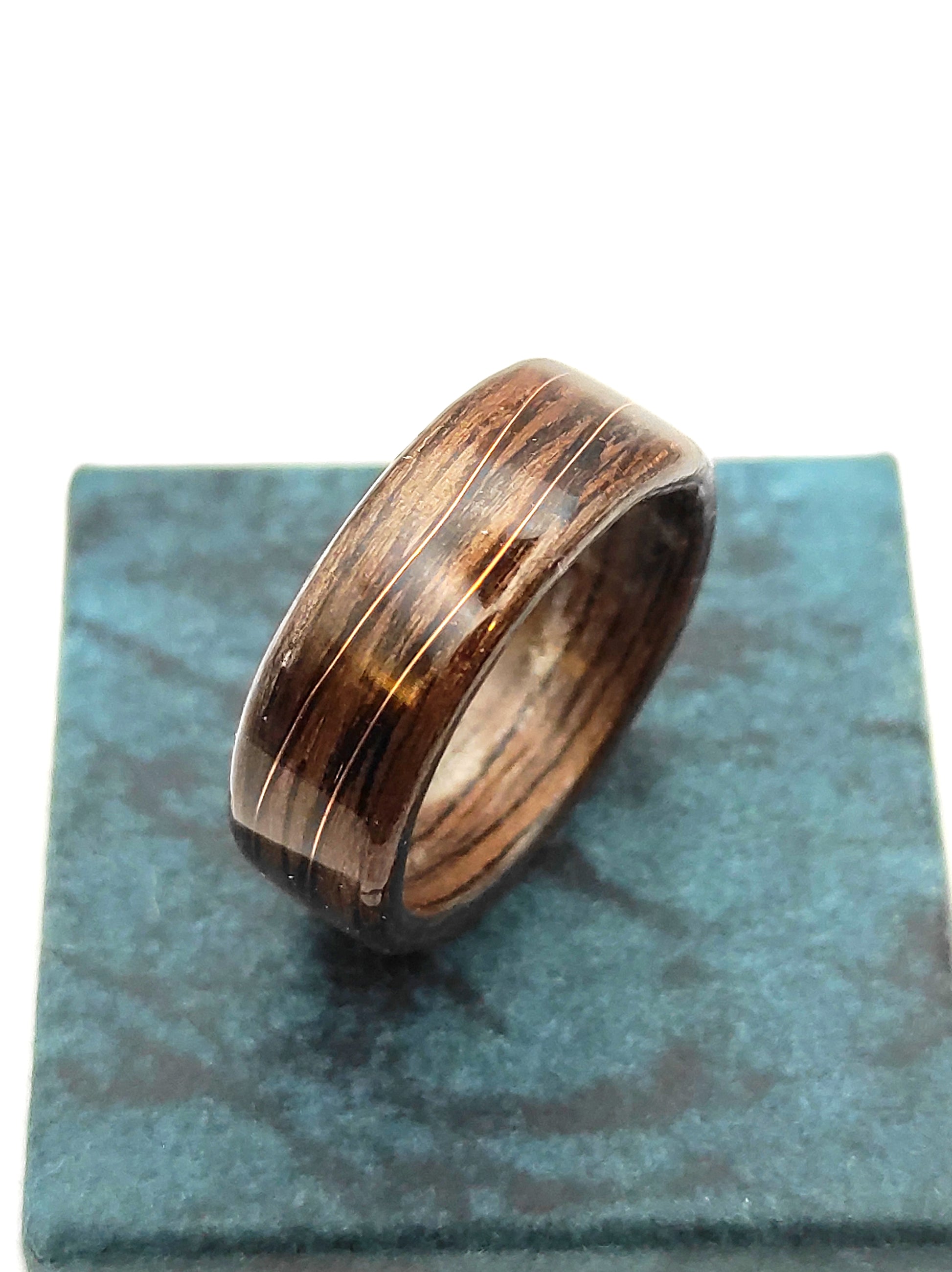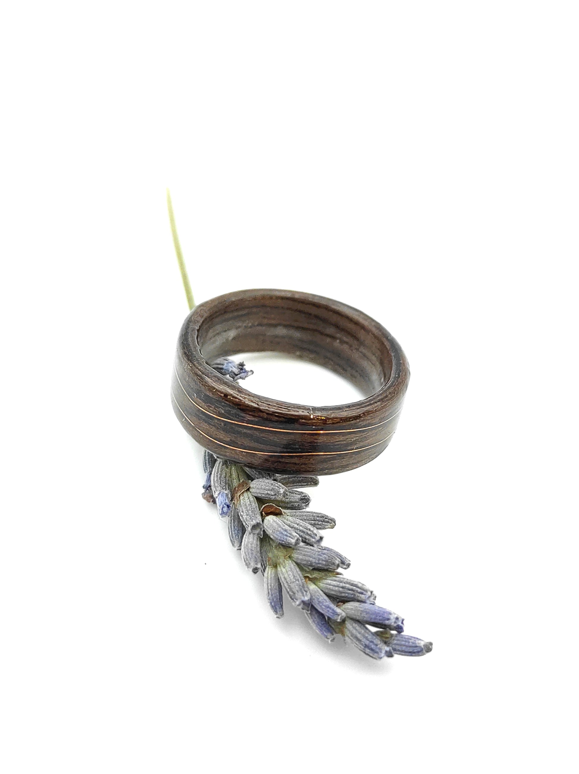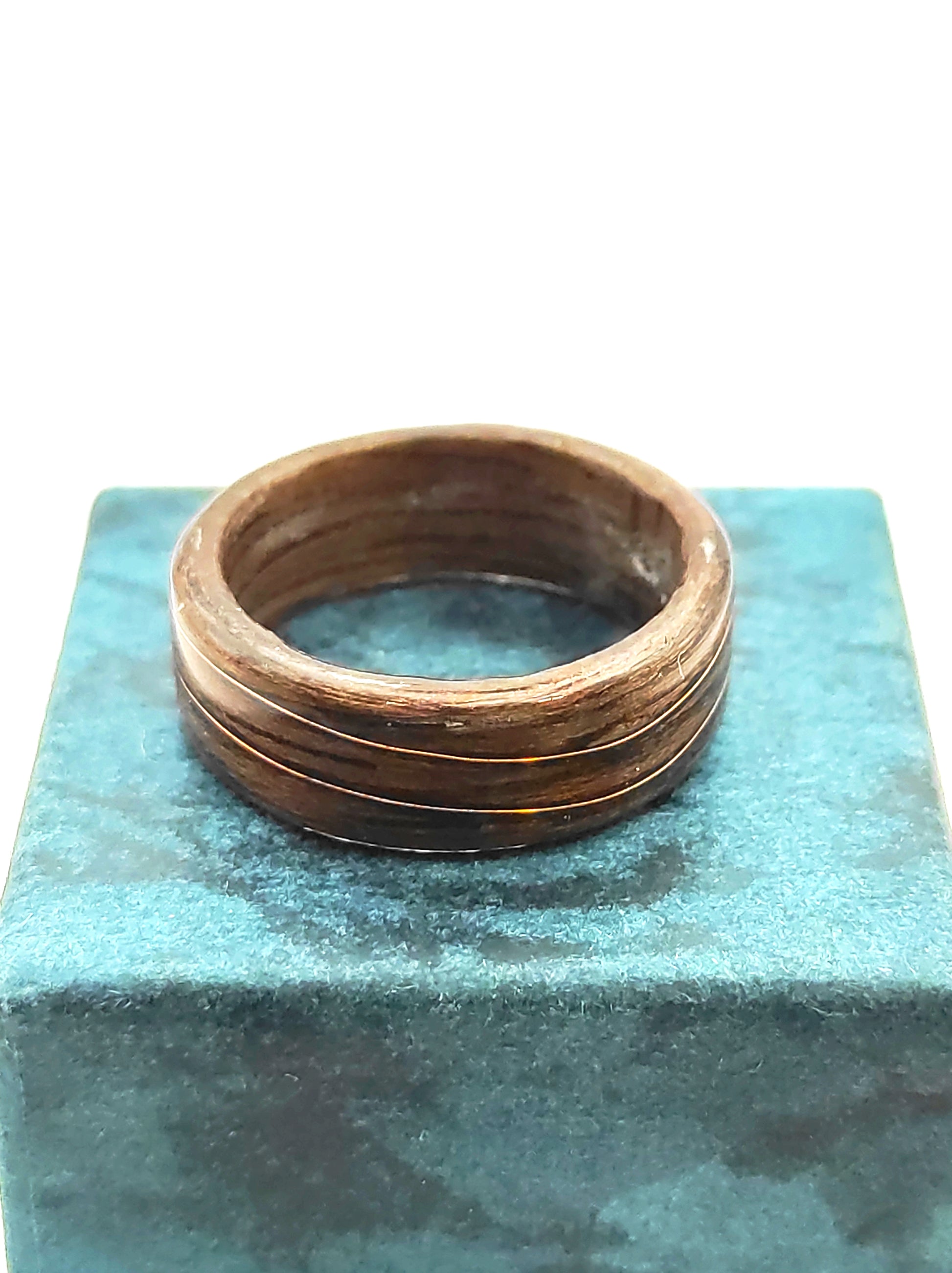 Drewniany pierścionek z orzecha z miedzianą falą – ręcznie wykonywany
